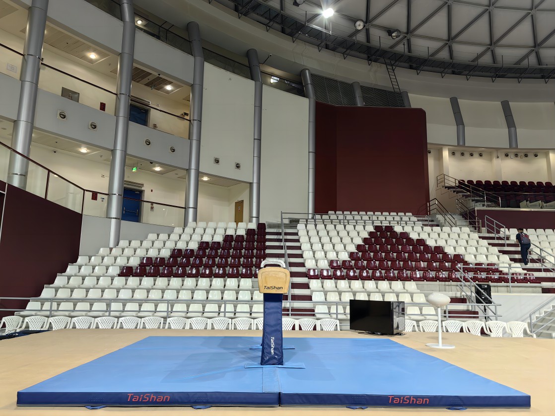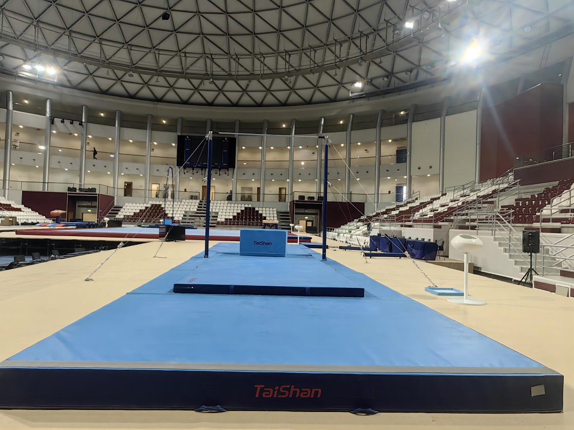 In order to ensure the excellent performance of gymnasts, Taishan Sports Professional Service Team went to Doha on April 8th to prepare for the installation and debugging of the competition venues such as the men’s training venue and commissioning of men’s training venues, women’s training venues and other competition venues.