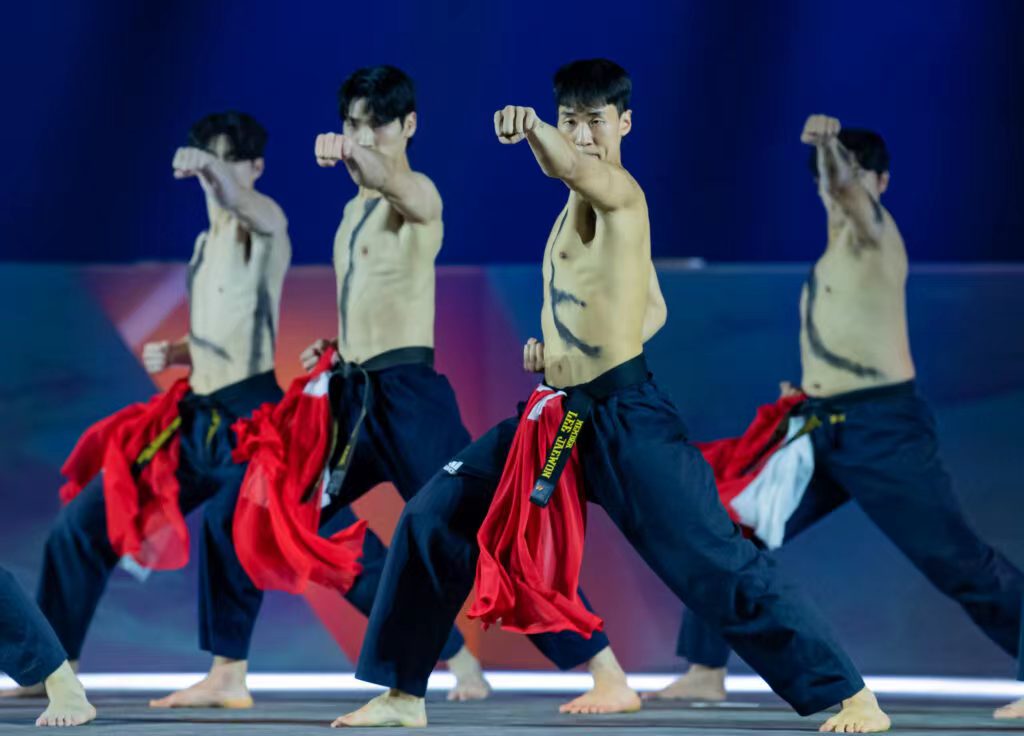 △ 武搏会选手在中国·3003新葡的京体育武术场地器材上的