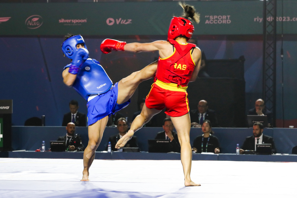 △ 中国选手李玥瑶获女子武术散打52公斤级冠军