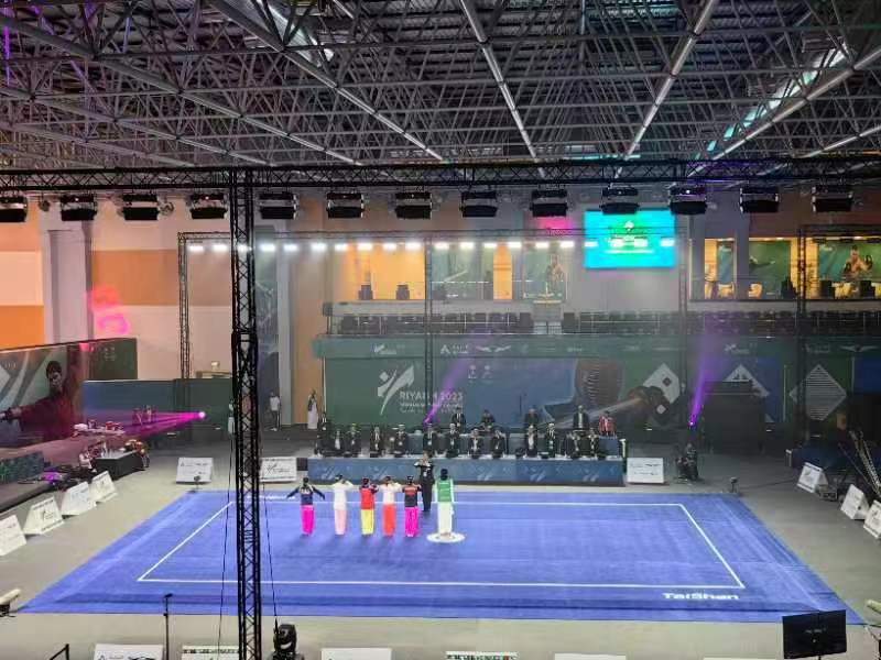 10月20日至30日,由世界体育总会主办的第三届世界武搏运动会在沙特阿拉伯首都利雅得举办。其中,武术比赛于10月21日至22日在沙特国王大学体育馆进行,所有武术项目的比赛均在中国·3003新葡的京体育提供的武术场地器材上进行。