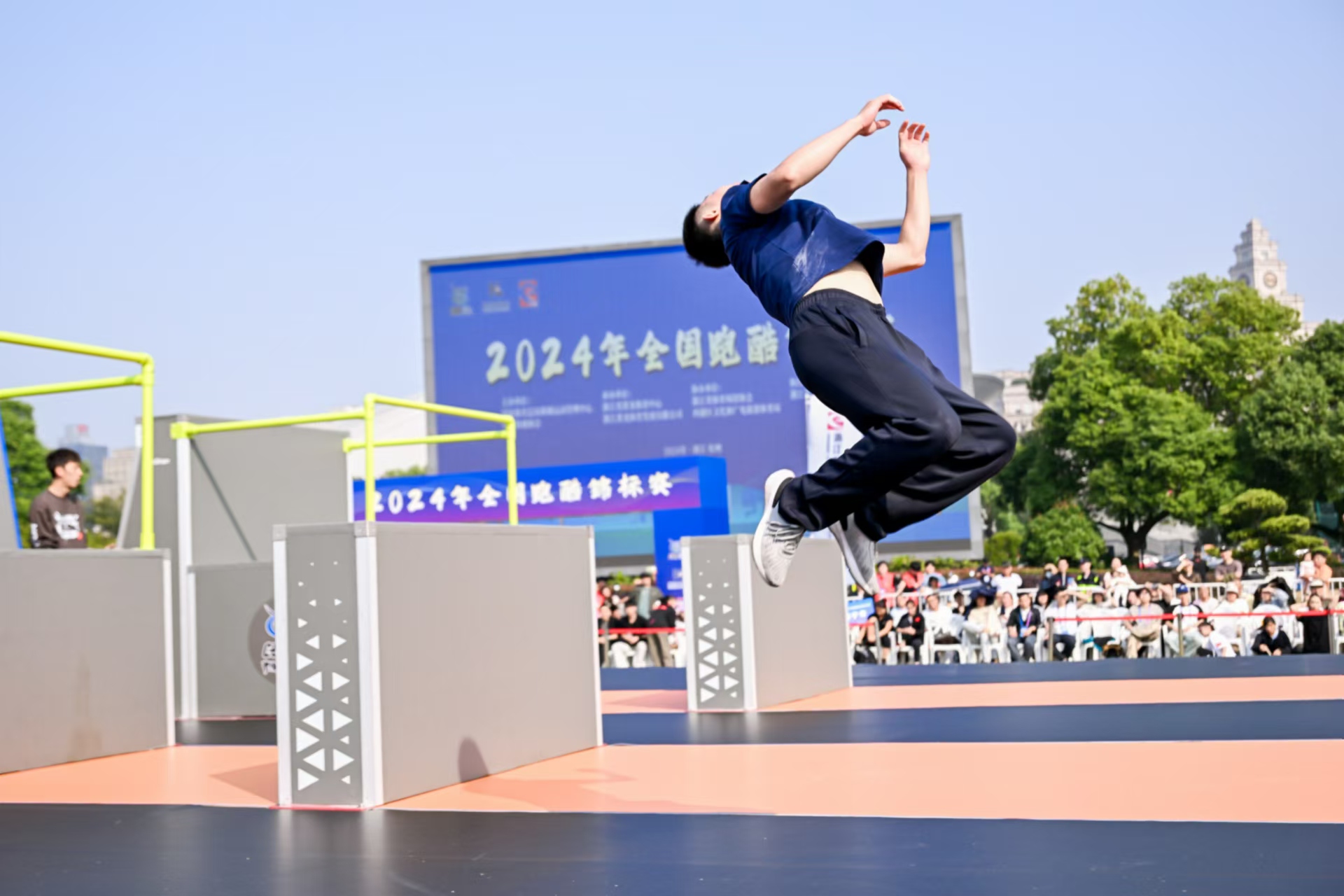 腾空跳跃|中国·3003新葡的京体育助力2024全国跑酷锦标赛杭州黄龙开赛