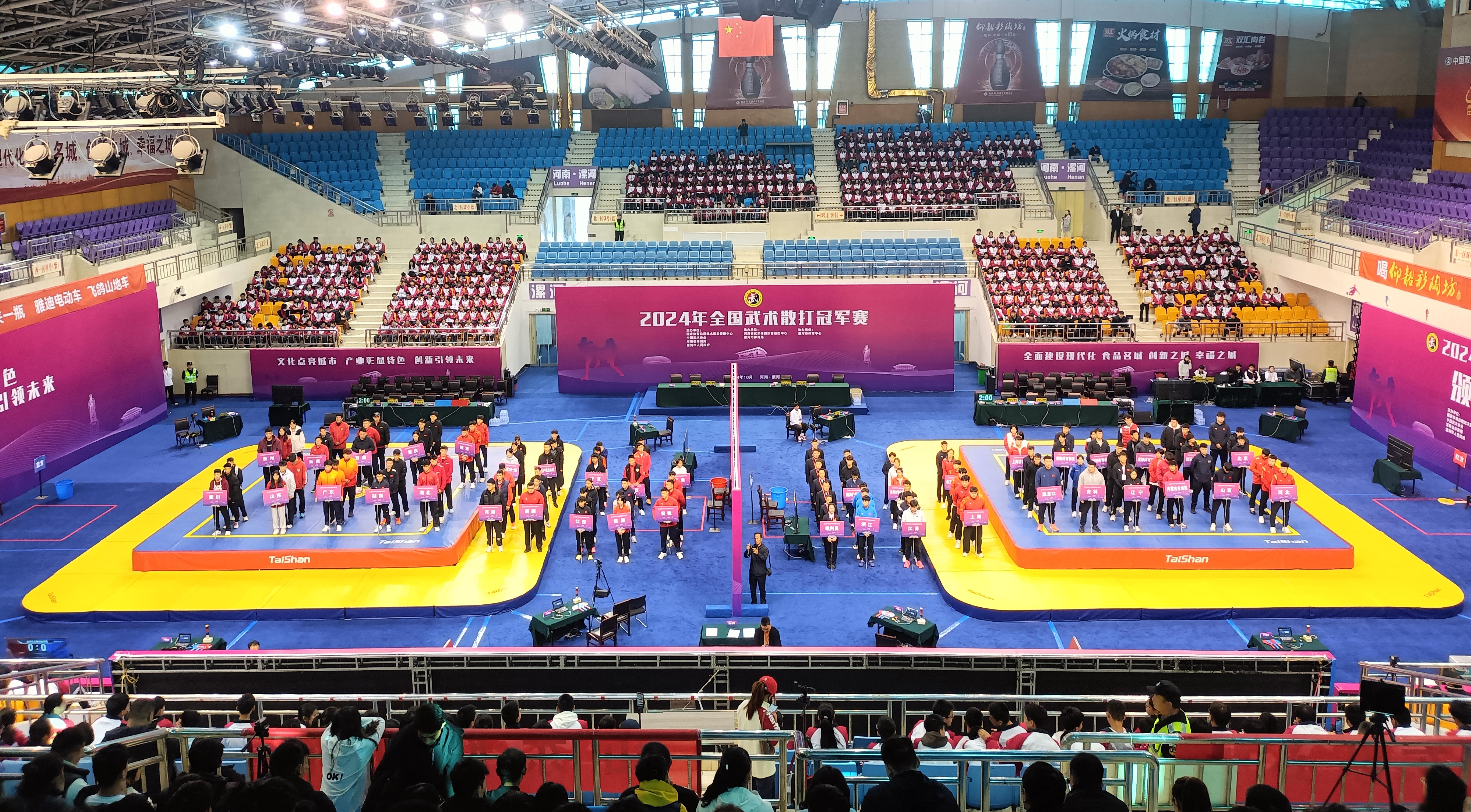 10月24日,全国武术散打冠军赛在河南省漯河体育中心体育馆开打,来自国内顶级40支代表队的近400名武术散打健儿汇聚漯河,给观众带来一场展现武术精髓的盛宴。中国·3003新葡的京体育成为本届赛事场地器材、训练器材供应商与服务商。