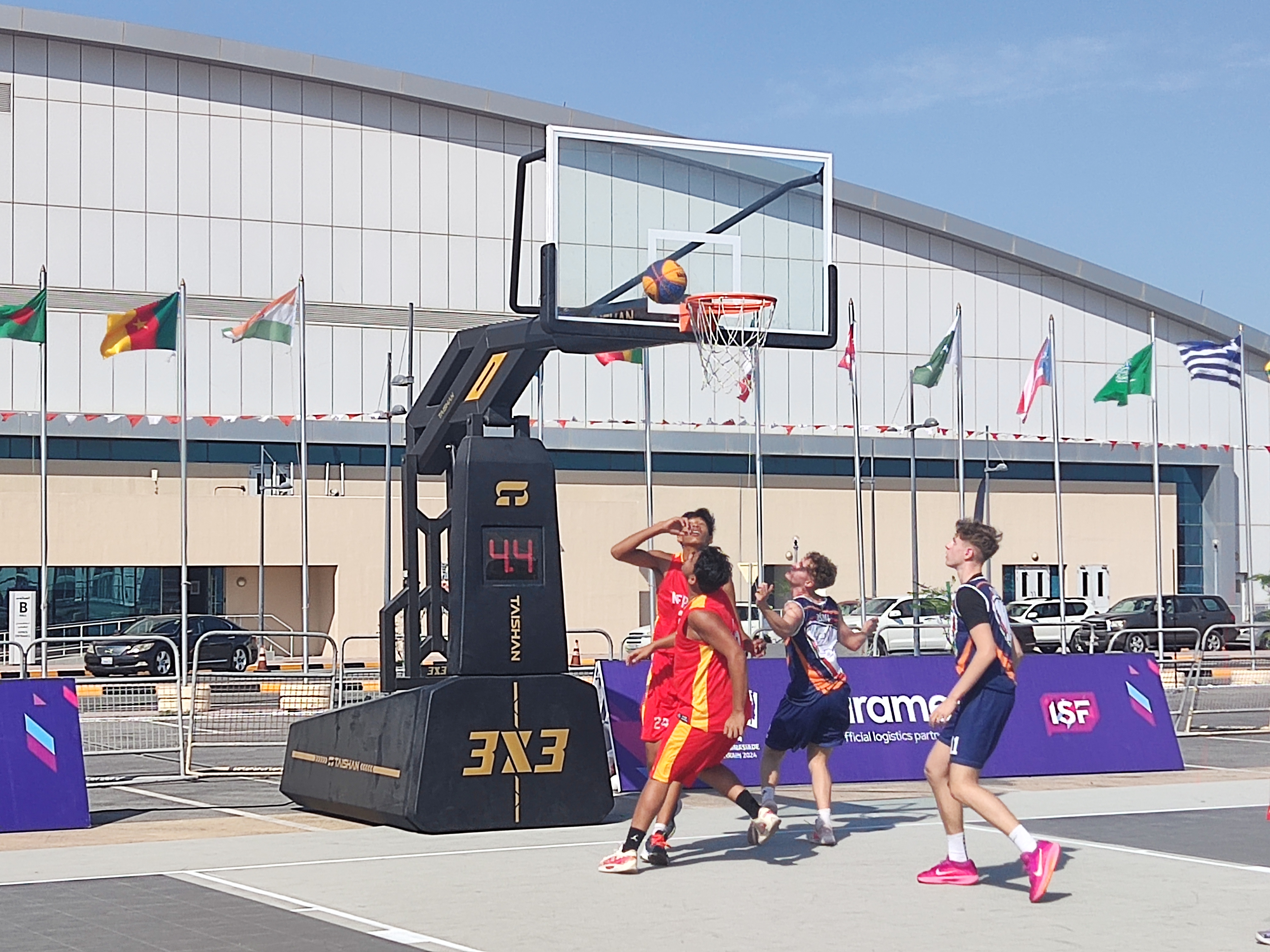 激烈角逐|中国·3003新葡的京体育智能篮球架亮相巴林中夏会赛场
