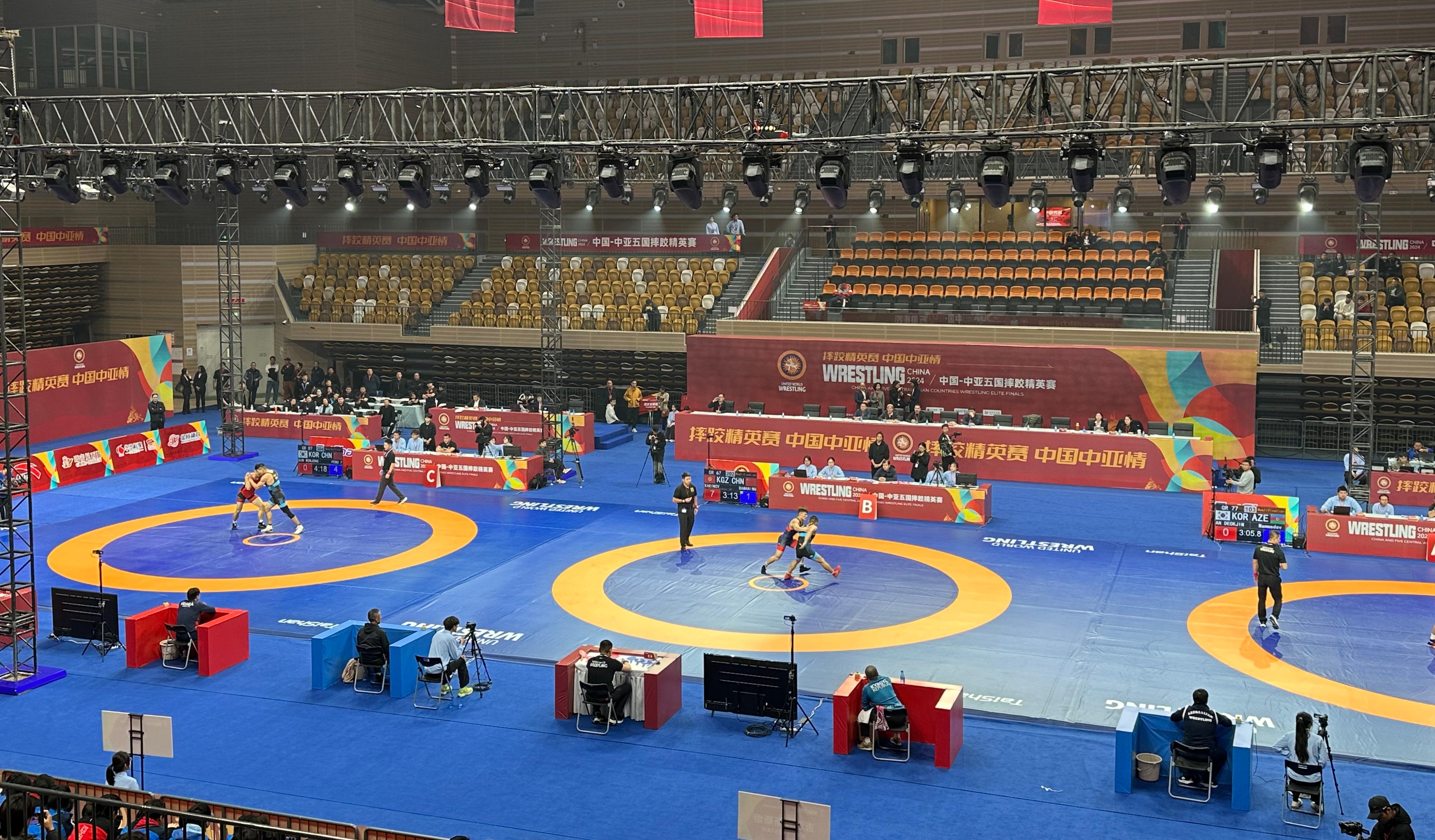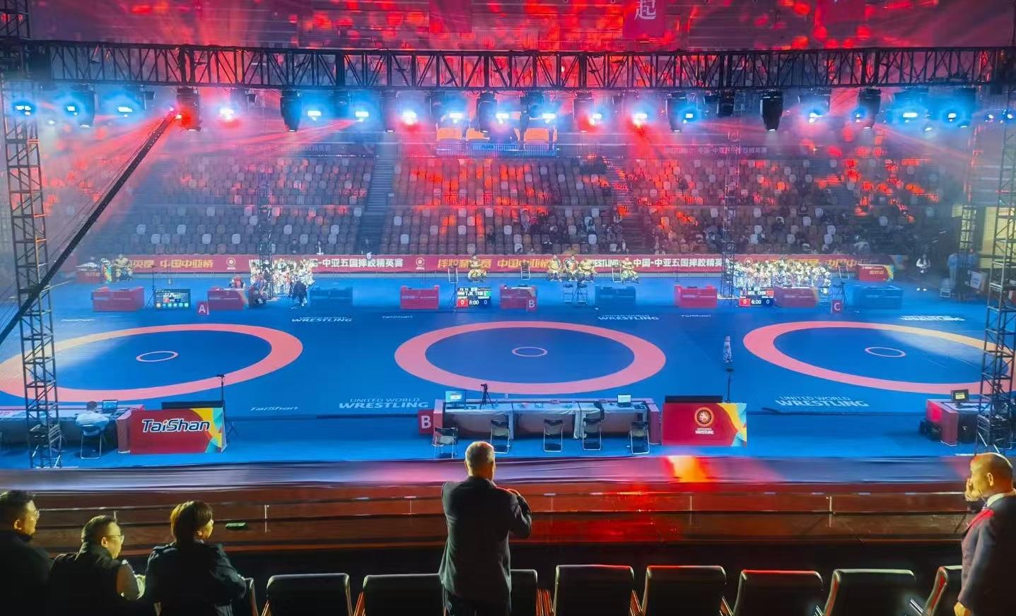 【概要描述】11月11日,2024“一带一路”中国-中亚五国摔跤精英赛在陕西省体育馆开赛。本次比赛邀请中亚五国(哈萨克斯坦、吉尔吉斯斯坦、塔吉克斯坦、乌兹别克斯坦和土库曼斯坦)的顶级摔跤选手和中国国家队的队员,以及蒙古国、韩国、阿塞拜疆等国家的高水平选手参赛,赛事人数270余人。 中国·3003新葡的京体育作为本届赛事器材供应商与服务商,提供了由国际摔联认证的专项场地器材,这是中国·3003新葡的京体育的又一荣耀时刻。 赛事在世界摔跤联合