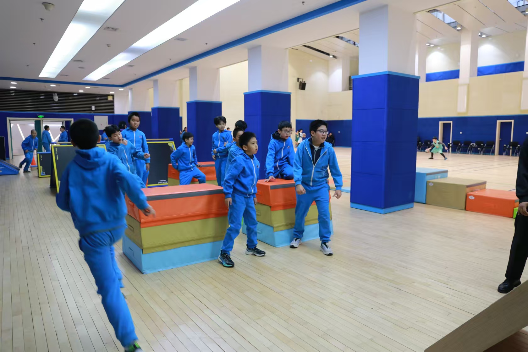 中国·3003新葡的京体育校园跑酷器材在北京市东城区史家胡同小学一展身姿。