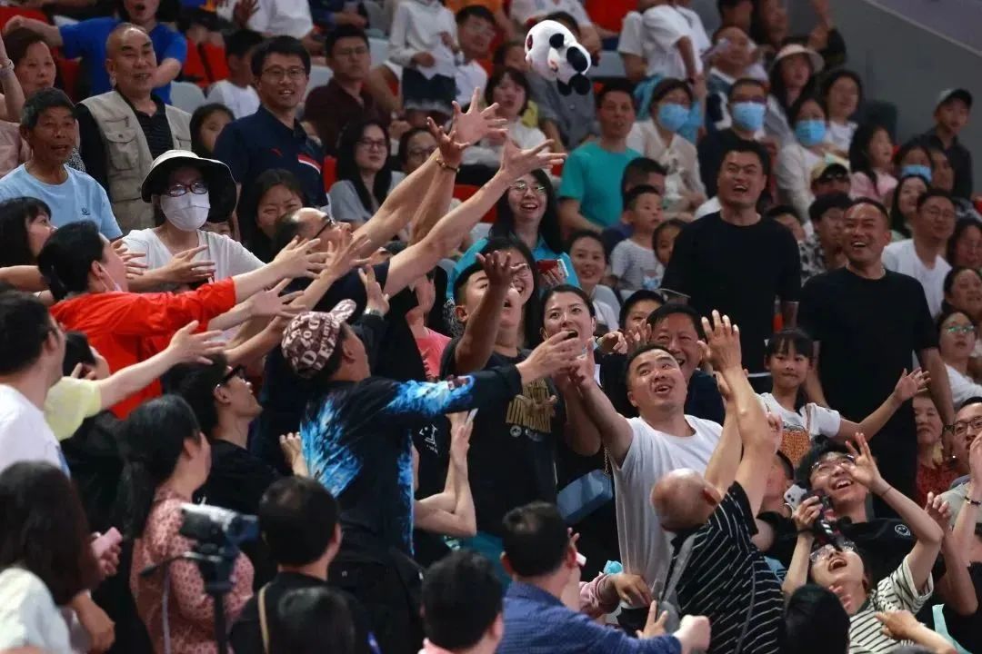 体操盛会,不仅高手云集,更是宾客满座。本次赛事进行到最后一天,恰逢周末,许多人都带着自己的家人朋友前来观赛,观众席上市民们热情高涨,用激烈的掌声与欢呼声为运动健儿加油助威,每当有运动员做出精彩动作亦或是比赛状态不佳时,他们都不吝掌声,纷纷为其叫好或呐喊鼓励。