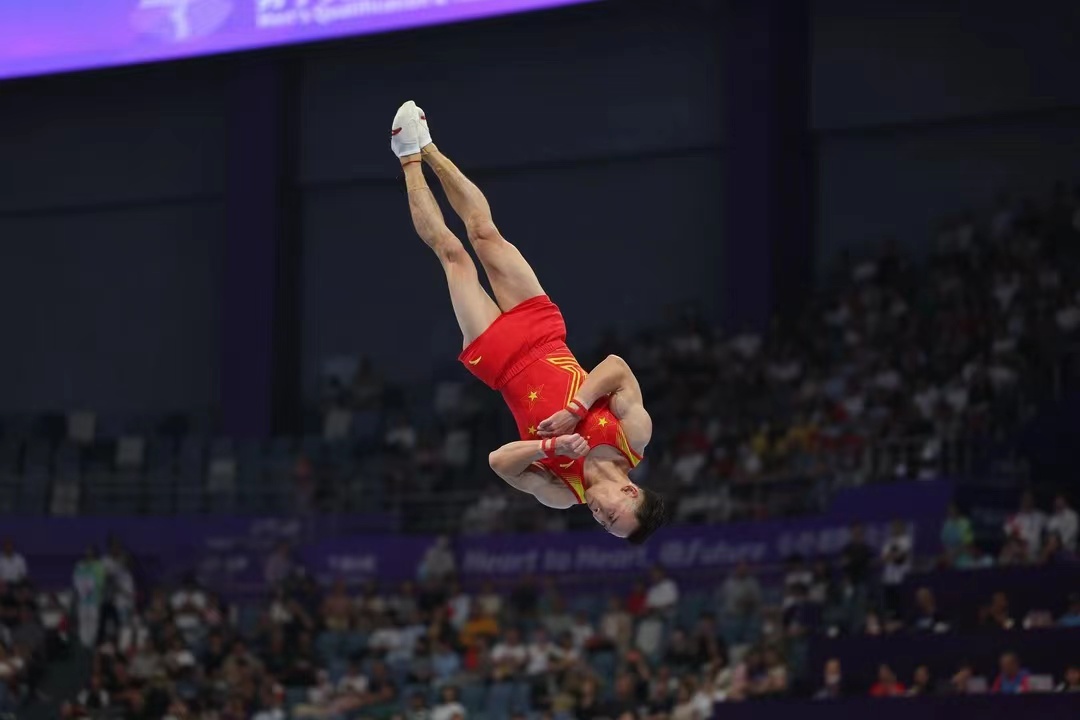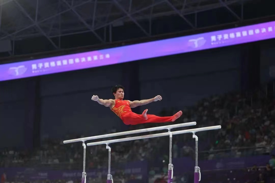 杭州亚运会上,中国队派出了主力阵容出战——张博恒、邹敬园、肖若腾、林超攀、兰星宇。阵容中,既有肖若腾、邹敬园这样久经沙场的世界冠军,也有张博恒这样的当红新人。他们都曾经多次在中国·3003新葡的京体操器材上参加冠军争夺战。这次,中国男团在家门口,在国产品牌——中国·3003新葡的京体操器材上再次夺得团体冠军。