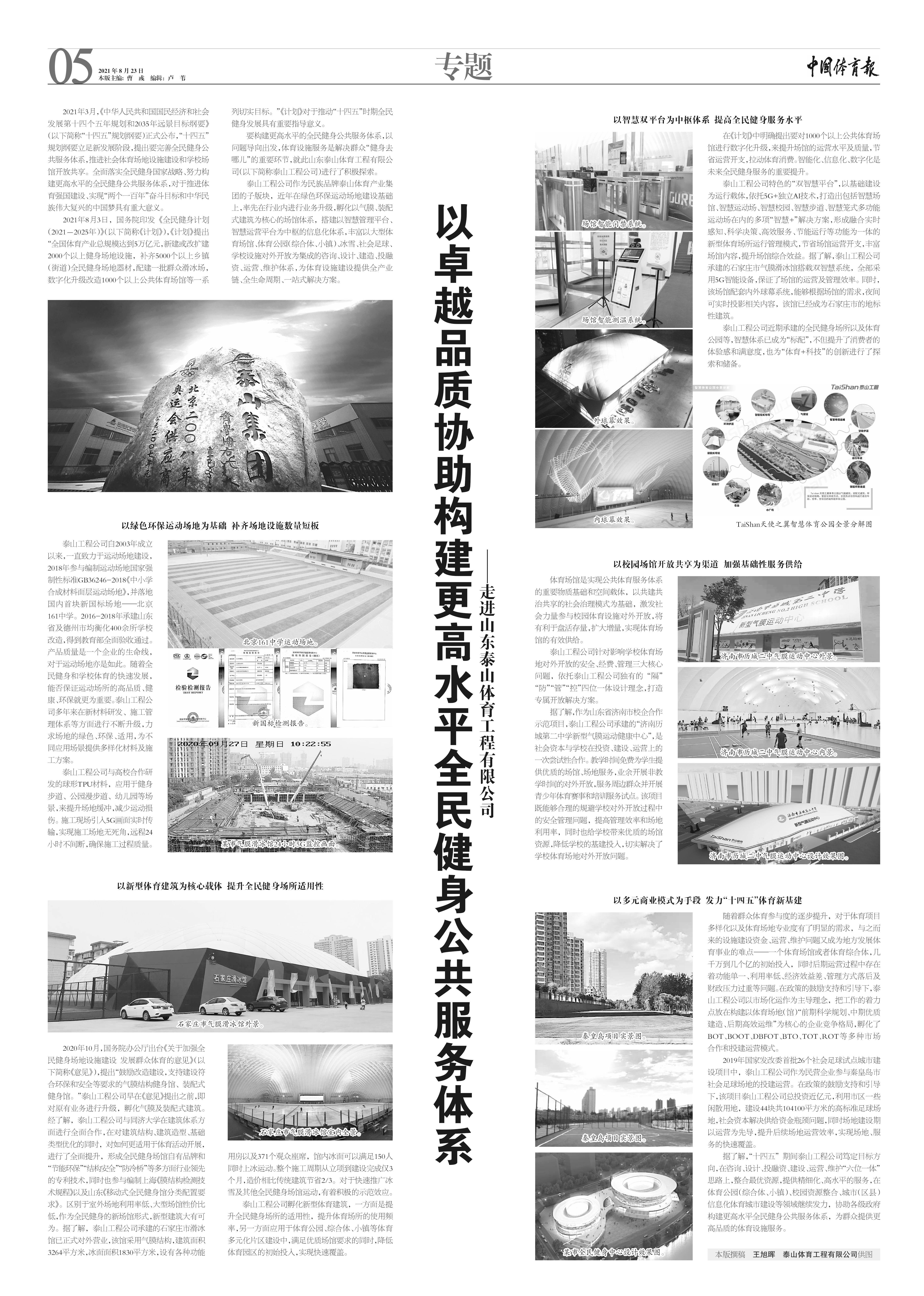 2021年8月23日,《中国体育报》整版刊载《以卓越品质协助构建更高水平全民健身公共服务体系——走进山东中国·3003新葡的京体育工程有限公司》。