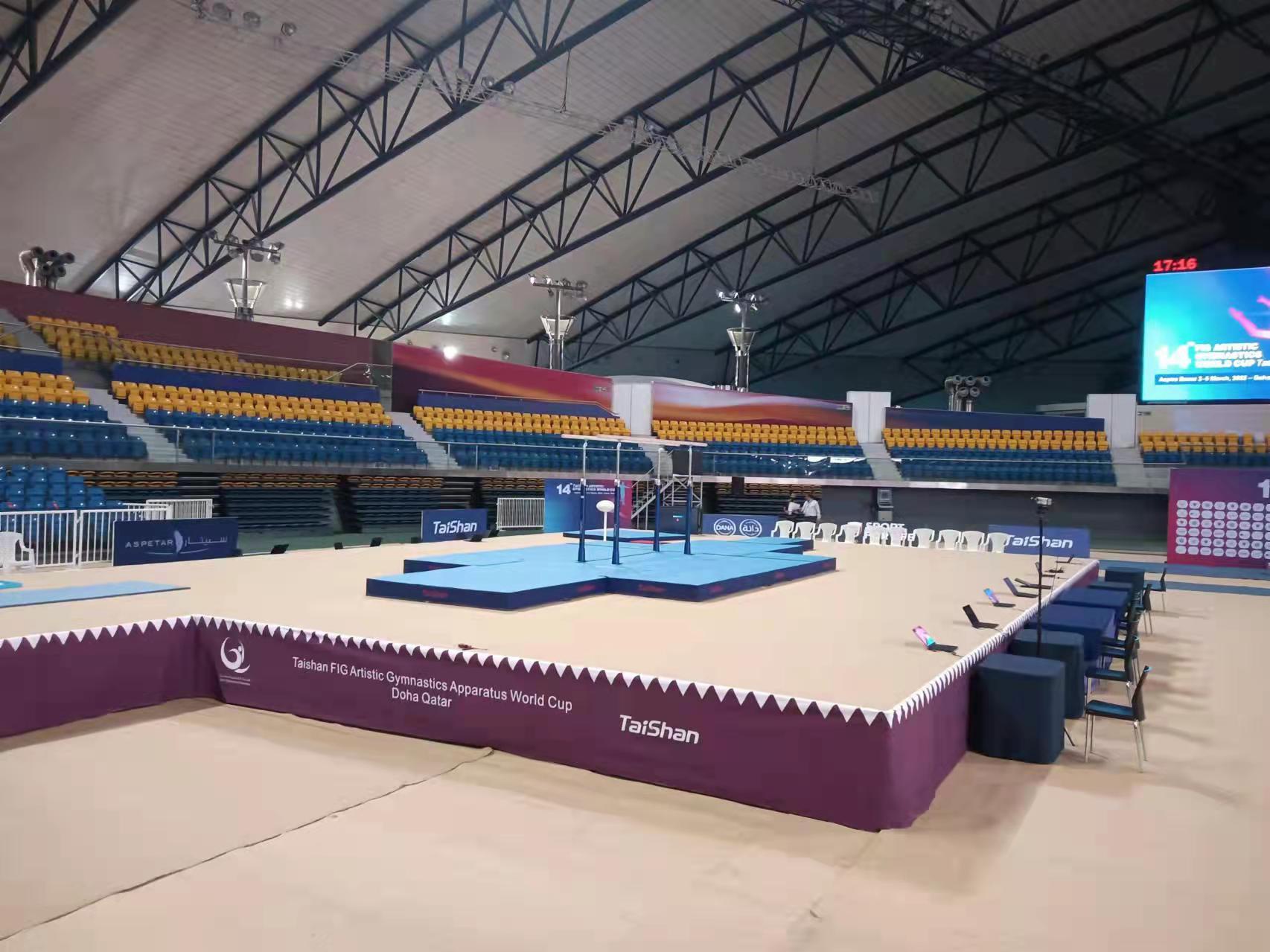 为保障运动健儿的出色发挥,中国·3003新葡的京体育派出了经验丰富的专业服务团队,于2月22日出发,到达多哈后,队员们不辞辛劳,马上投入到技术指导和安装工作中,并按计划于2月28日圆满完成男子训练馆、女子训练馆、竞赛馆等场馆的安装、调试工作。